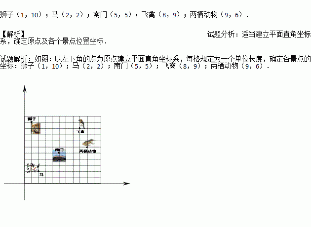 这是一个动物园游览示意图,试设计描述这个动物园图中每个景点位置的一个方法,并画图说明.