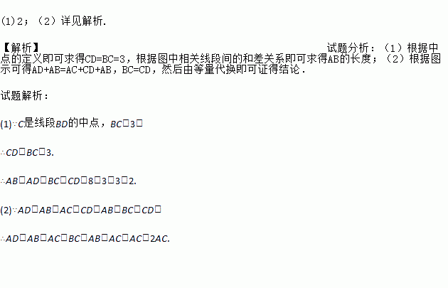 (1)若AD=8,BC=3,求线段CD,AB的长;
