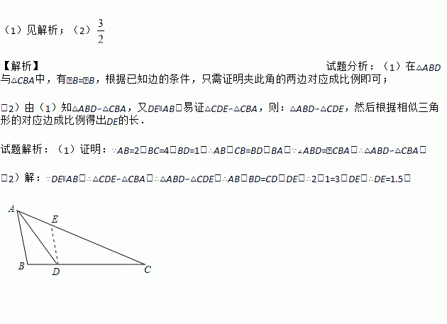 (2)在原图上作DE∥AB交AC与点E,请直接写出另一个与△ABD相似的三角形,并求出DE的长.