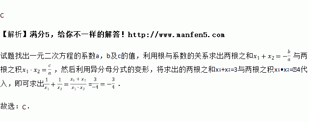 若方程x2﹣3x﹣4=0的两根分别为x1和x2,则+的值是( )