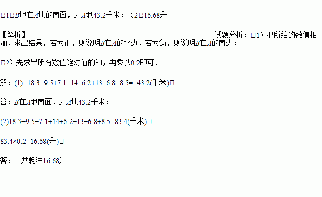 李喆的爸爸开着出租车在一条南北公路上来回行驶.这天早晨他从A地出发,晚上到达B地.当天行驶记录如下(向北行驶记为正,向南为负):