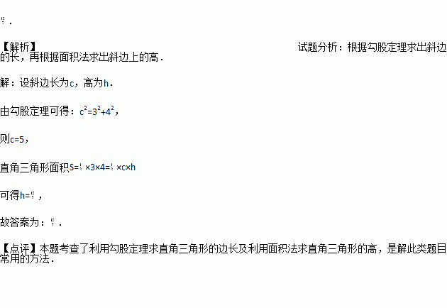 直角三角形两直角边长分别为3和4,则它斜边上的高为_____.