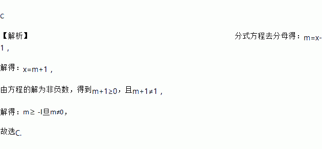 已知关于x的分式方程=l的解是非负数,则m的取值范围是( )
