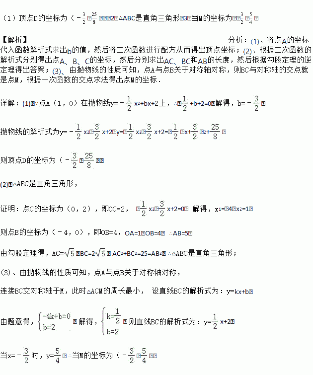 (3)点M是抛物线对称轴上的一个动点,当△ACM的周长最小时,求点M的坐标.