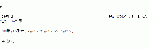某地海拔高度(千米)与温度的关系可以用表示, 则该地区某海拔高度为1500米的山顶上的温度为( )