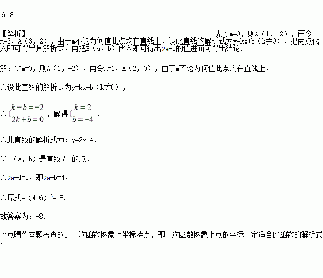无论m取什么实数,点A(m+1,2m﹣2)都在直线l上.若点B(a,b)是直线l上的动点,则(2a﹣b﹣6)3的值等于____.