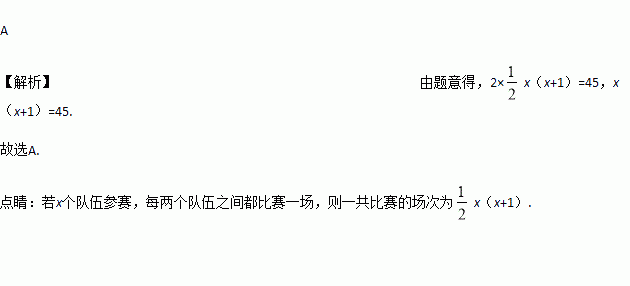 有x支球队参加篮球比赛,共比赛了45场,每两队之间都比赛两场,则下列方程中符合题意的是( )