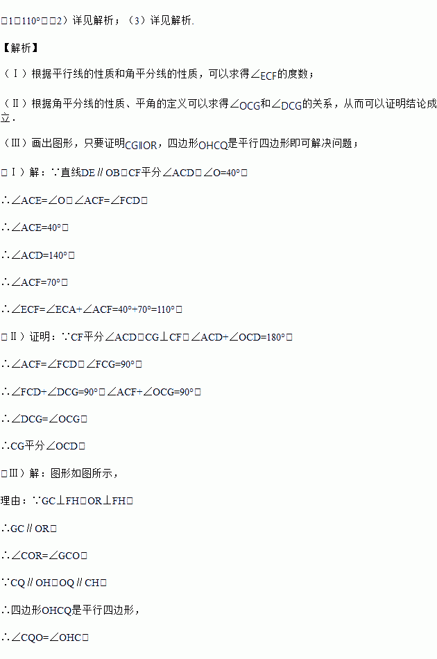(Ⅰ)若∠AOB=40°,求∠ACD及∠ECF的度数;