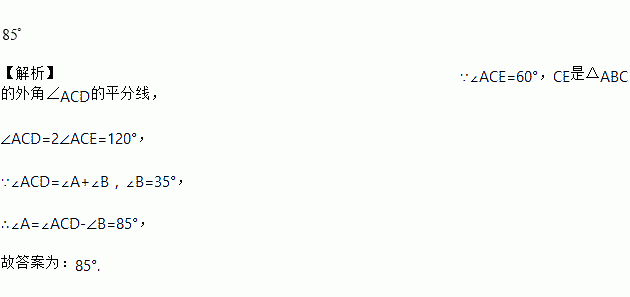 如图,CE是的外角的平分线,若,则 ______ .