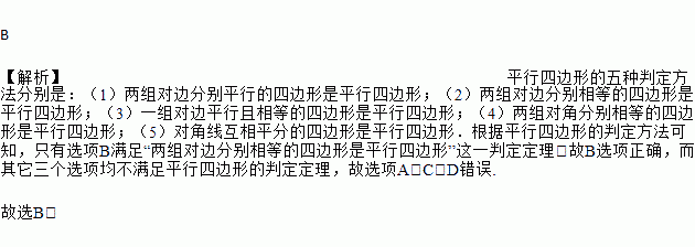 A. AB∥CD,AD=BC B. AB=CD,AD=BC