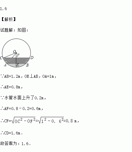 一条排水管的截面如图所示,已知排水管的半径OA=1m,水面宽AB=1.2m,某天下雨后,水管水面上升了0.2m,则此时排水管水面宽CD等于 m.