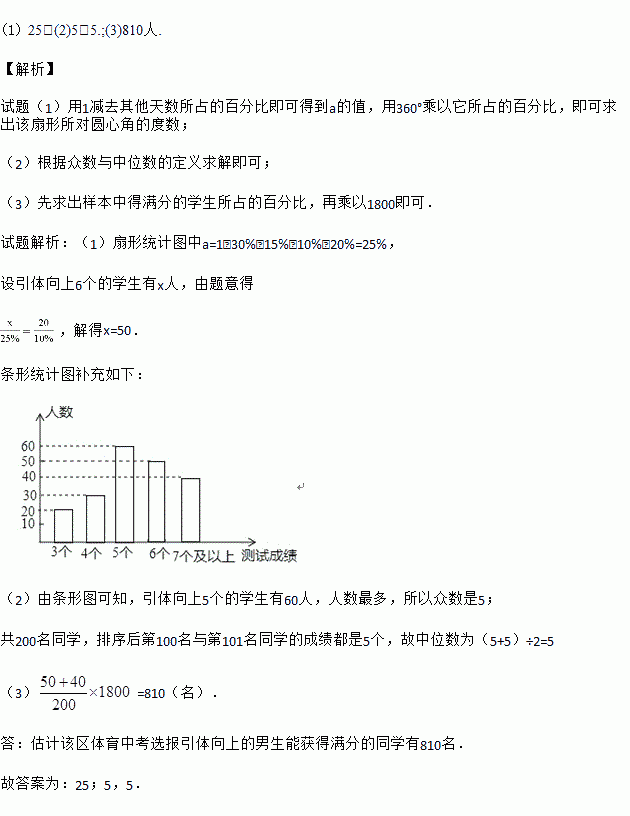 (3)该区体育中考选报引体向上的男生共有1800人,如果体育中考引体向上达6个以上(含6个)得满分,请你估计该区体育中考中选报引体向上的男生能获得满分的有多少名?