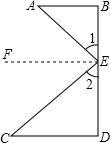 分析:过E作EF平行于AB,则EF∥CD,由平行线的性质可得∠A=∠AEF=∠1,∠C=∠FEC=∠2,由平角∠BED=180°,即可得∠AEC的度数.