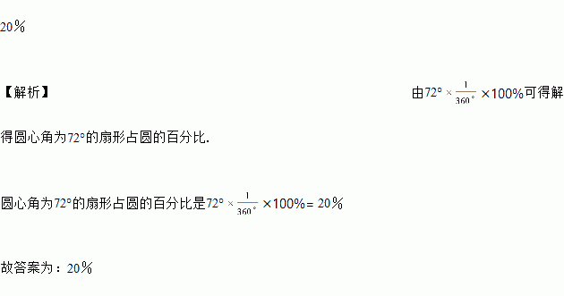 一个扇形图中各个扇形的圆心角的度数分别是45°、72°、108°、135°,则圆心角为72°的扇形占圆的百分比是_______.