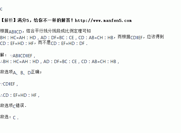 如图,已知AB∥CD∥EF,那么下列结论中错误的是( )