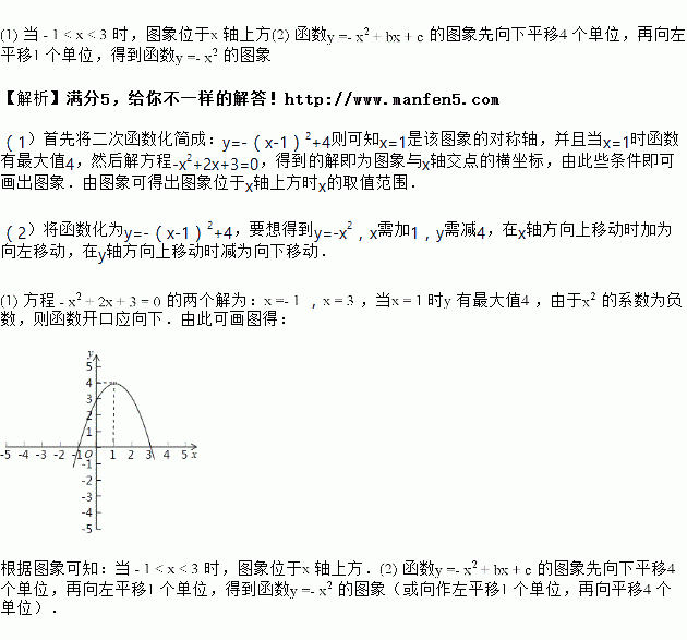 画出二次函数的图象,并根据图象说明,当取何值时,图象位于上方?