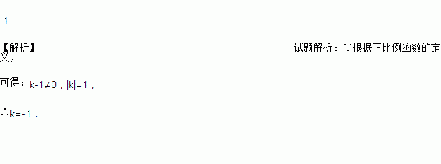 已知函数y=(k-1)x|k|是正比例函数,则k=________