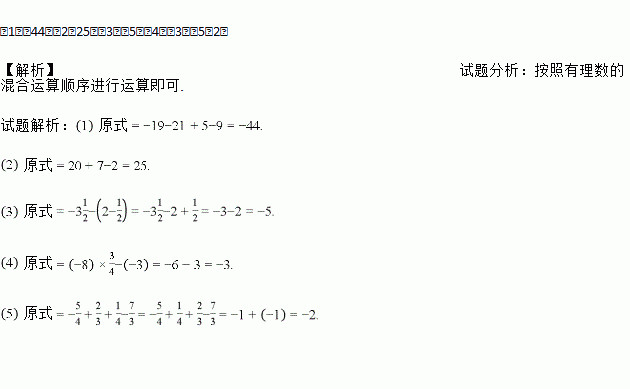 (1)(﹣19)﹣(+21)﹣(﹣5)+(﹣9);