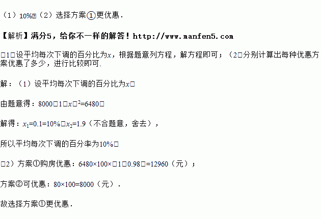 我市某楼盘准备以每平方米8000元的均价对外销售,由于国务院有关房地产的新政策出台后,购房者持币观望,房地产开发商为了加快资金周转,对价格经过两次下调后,决定以每平方米6480元的均价开盘销售