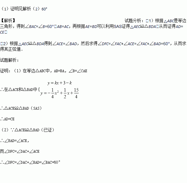 如图,在等边△ABC中,点D,E分别在边BC,AB上,且BD=AE,AD与CE交于点F.