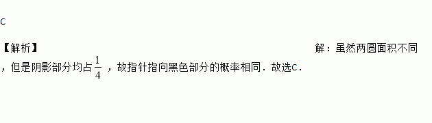 用力转动如图所示的转盘甲和转盘乙的指针,如果想让指针停在阴影区域,选取哪个转盘成功的机会比较大?( )
