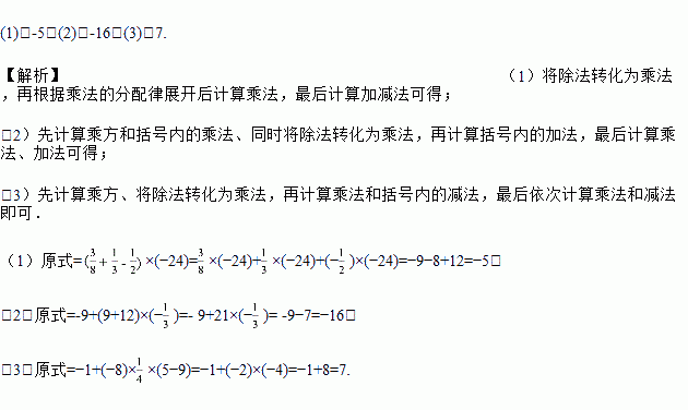 (1);(2)-32+[9-(-6)×2]÷(-3)