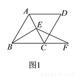 在菱形中,,是对角线上任意一点,是线段延长线上一点,且,连接、.