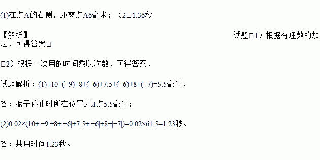 (2)如果振子最后回到出发点A且振子每毫米需时间0.02秒,则共用时间多少秒?