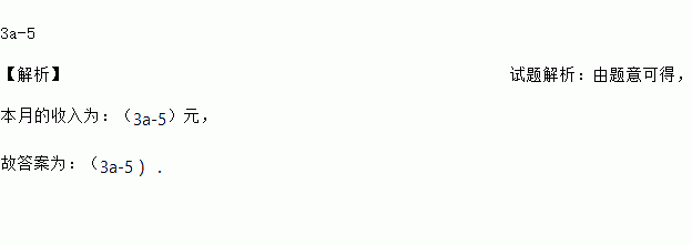商店上月收入为元,本月的收入比上月的3倍少5元,本月的收入为__________元.(用含的式子表示)