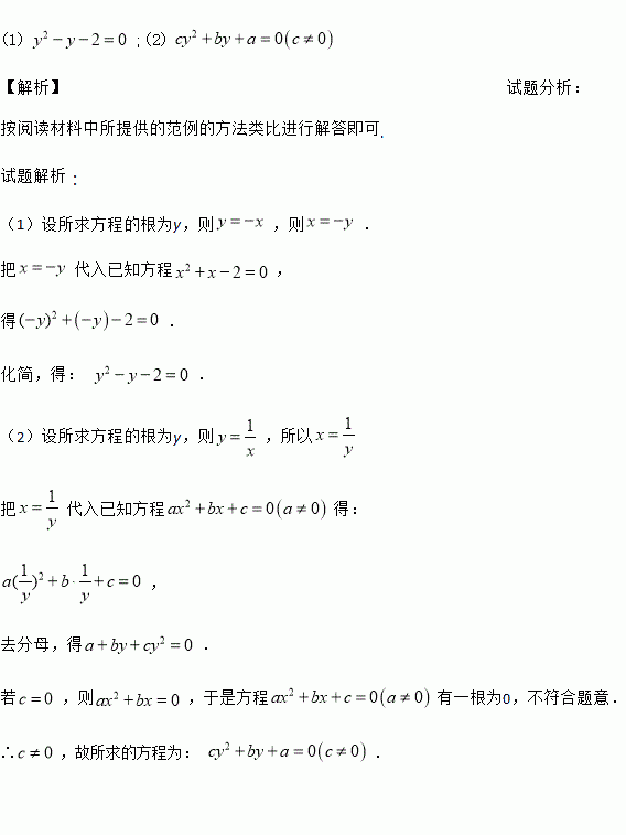 这种利用方程根的代替求新方程的方法,我们成为“换根法”,请用阅读材料提供的“换根法”求新方程