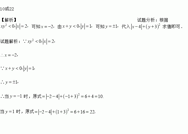 已知|x|=2,|y|=1,且x+y<0,xy2<0,求|x﹣4|+(y+3)2的值.