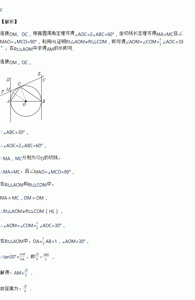 如图,已知是⊙的直径,,和是圆的两条切线,,为切点,过圆上一点作⊙的切线,分别交,于点,,连接,.若,则等于( )
