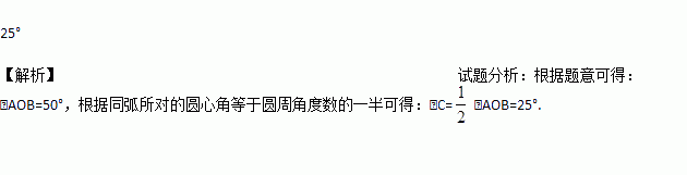 如图,CD是⊙O的直径,若AB垂直于CD,垂足为B,∠OAB=40°.则∠C等于____度.