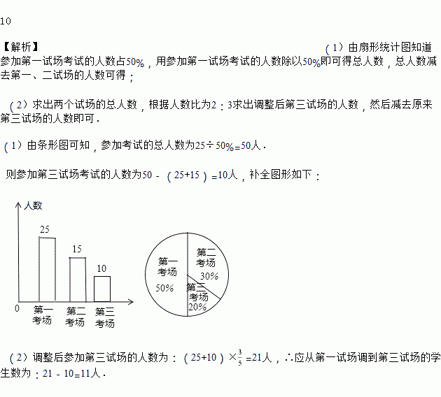 (2)根据实际情况,需从第一试场调部分学生到第三试场考试,使第一试场的人数与第三试场的人数比为2:3,应从第一试场调多少学生到第三试场?