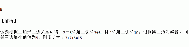 一个三角形的两边长分别为3和7,且第三边长为整数,这样的三角形的周长最小值是( )