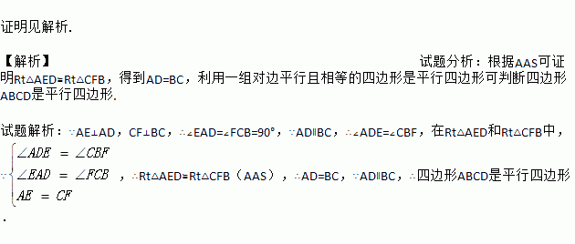 如图,四边形ABCD中,AD∥BC,AE⊥AD交BD于点E,CF⊥BC交BD于点F,且AE=CF,求证:四边形ABCD是平行四边形.