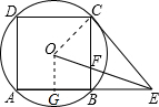 分析 (1)连接OC,由O为正方形的中心得到∠OCB为45°,再由AB=BC=BE,得到三角形BCE为等腰直角三角形,即∠BCE为45°,进而确定出∠OCE为直角,即CE垂直于OC,可得证;