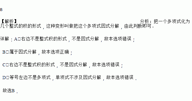 下列等式由左边到右边的变形中,属于因式分解的是( )