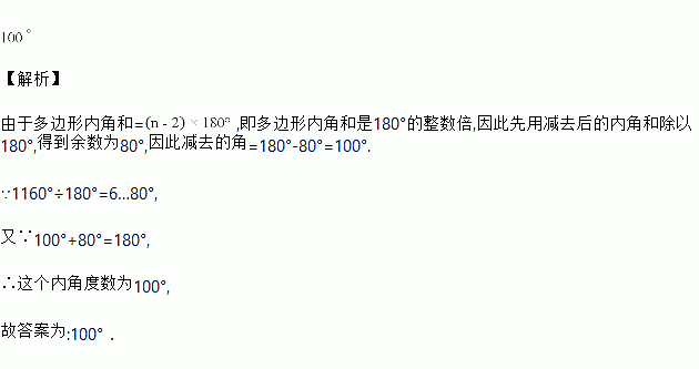 已知一个多边形中,除去一个内角外,其余内角的和为