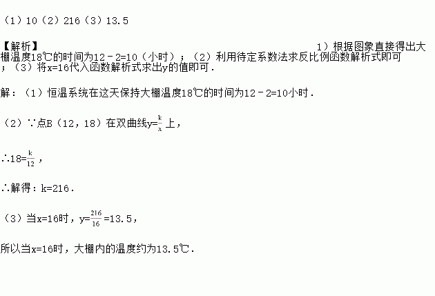 (1)恒温系统在这天保持大棚内温度18 ℃的时间有多少小时?