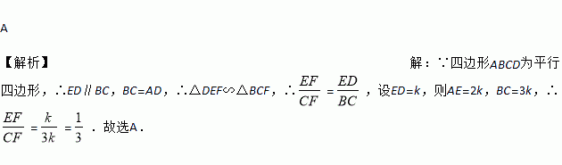 如图,在平行四边形ABCD中,点E是边AD上一点,且AE=2ED,EC交对角线BD于点F,则等于( )