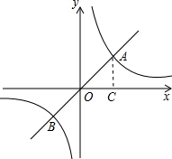 ,可得到A点坐标为(1,1),B点坐标为(-1,-1),即OC=AC=1,则△OAC为等腰直角三角形,得到OA=