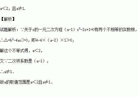 已知关于x的一元二次方程(a-1)x2-2x+1=0有两个不相等的实数根,则a的取值范围是 .
