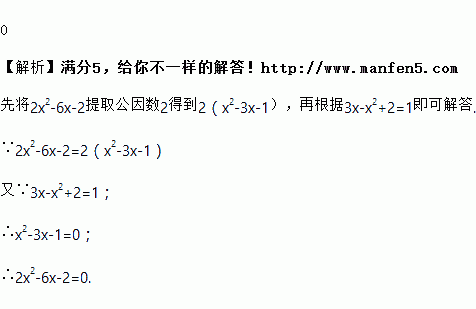 已知3x-x2+2=1,2x2-6x-2=___________.
