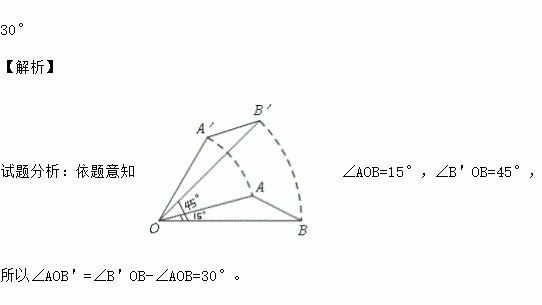 如图,将△AOB绕点O按逆时针方向旋转45°后得到△A'OB',若∠AOB=15°,则∠AOB'的度数是 .