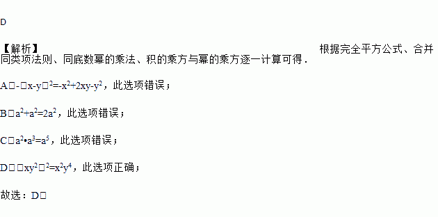 A. ﹣(x﹣y)2=﹣x2﹣2xy﹣y2 B. a2+a2=a4