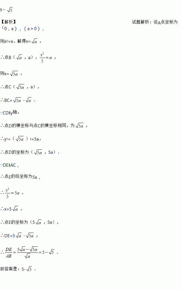 如图,平行于x轴的直线AC分别交抛物线y1=x2(x≥0)与y2=(x≥0)于B、C两点,过点C作y轴的平行线交y1于点D,直线DE∥AC,交y2于点E,则=_____.