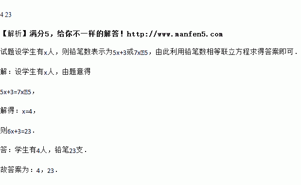 有若干只铅笔要奖给部分学生,若每人支就多支,若每人支就少支,则学生数和铅笔数分别为________人、________支.