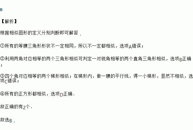③四个角对应相等的两个梯形相似;④所有的正方形都相似.