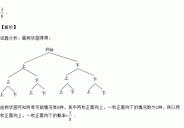 同时抛掷三枚质地均匀的硬币,出现两枚正面向上,一枚正面向下的概率是 .
